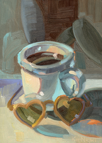 "Art in the Morning" is my way to greet the day. What began in 2011 as an attempt to make the world a kinder place through art, has turned into fourteen years, and running, of weekly paintings accompanied by my musings on nature, painting, life, and jazz. Once a week I send out an email with a painting, hot off my easel, for you to enjoy with your morning cup of coffee/ tea/ chocolate before you dive in to your work day. It's just a moment to relax. It's my attempt to make art a part of our every day lives. All of the arts should get out of the cloisters and into the moment. Any moment. Share it with a friend. If they want to receive it regularly, they can just send me an email with "Please Add" in the subject line. I never share your address. Email me:Kit@KitNight.com (this is not a link) Night has no "K". Thanks for being here! - Kit